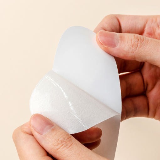 - Retira el parche del empaque y quita la película protectora.